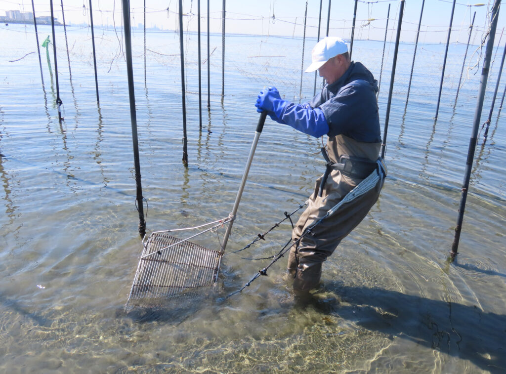 アサリ採捕漁場には、漁業協同組合が管理をしている「養貝場」と自然放置状態である「平場」の二種類があります。